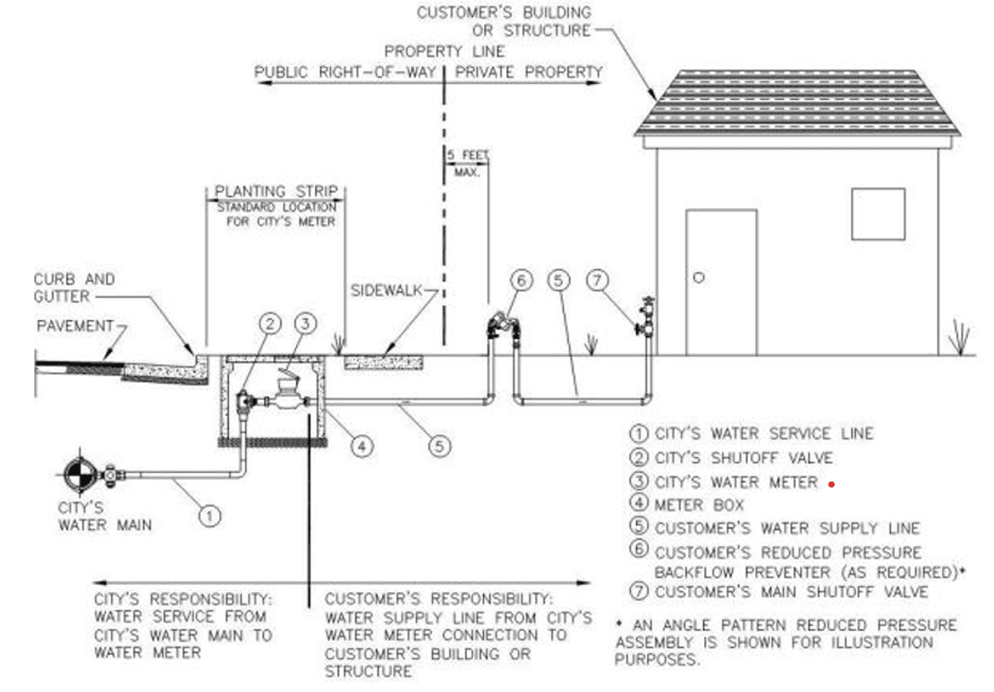 Provided below is a diagram of a typical water service line with the public and private ownership side labeled.